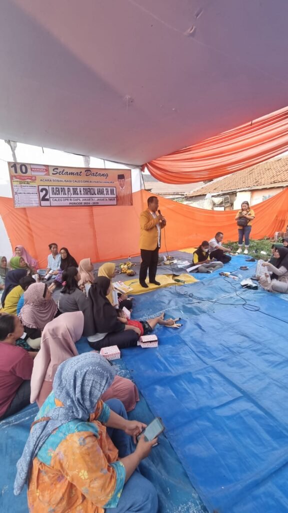 MEDIAINVESTIGASIMABES.CO.ID | JAKARTA – Dalam rangka sosialisasi dan silaturahmi Irjen Pol (Purn) Drs.SYAFRIZAL AHIAR SH.MM Calon Legislatif DPR RI Dapil 1 Jakarta Timur Nomor Urut 2 dari Partai Hanura bersama tandemnya Lestari Manurung SH, Caleg DPRD Dapil 4 Jakarta Timur Partai Hanura Nomor Urut 1 Bersama Tim Pemenangan dan Relawannya kunjungi warga Masyarakat Cakung,PIK penggilingan Jakarta Timur dihadiri hadir 450 orang lebih kurang, Jam 16.00 Wib, Kamis ( 21 /12 / 2023 )