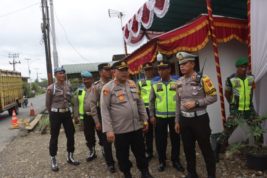 Kapolres Langkat AKBP Faisal Rahmat HS, SIK. SH. MH Cek dan Pantau Kesiapan Pos Pelayanan dalam rangka Operasi Kepolisian Terpusat Lilin 2023 di Jajaran Wilkum Polres Langkat pada hari Senin (25/12/2023) pukul 10.30 wib.