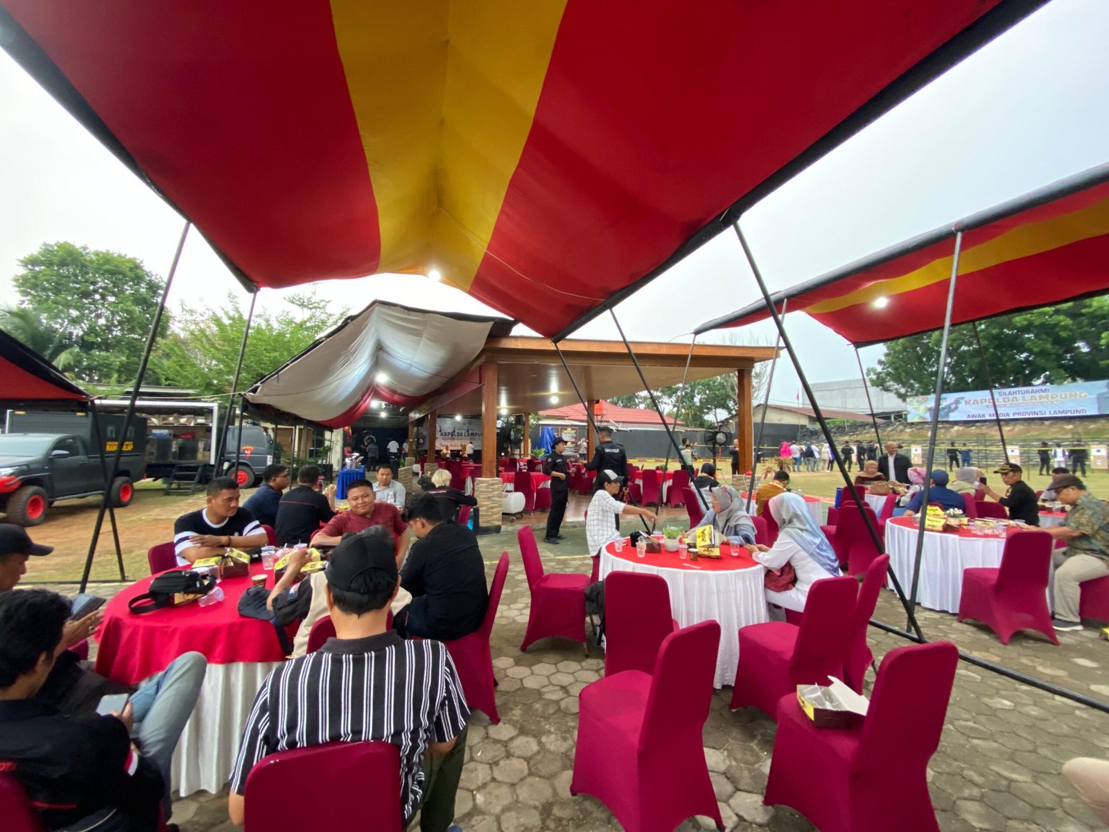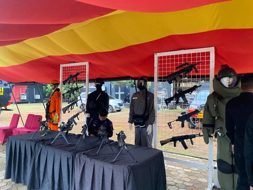 Puluhan awak media lokal hingga nasional berkumpul di lapangan tembak Mako setempat. Kegiatan dibuka dengan pengalungan selendang tapis oleh Dansatbrimob Polda Lampung, Kombes Pol Wahyu Widiarso Suprapto kepada perwakilan jurnalis.
