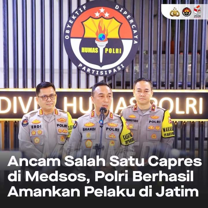 MEDIAINVESTIGASIMABES.CO.ID | Jakarta – Polri berhasil mengamankan pelaku ancaman penembakan salah satu calon presiden di media sosial. Pelaku berinisial AWK (23) merupakan pemilik akun TikTok @calonistri7600 berhasil ditangkap berkat kerja sama jajaran Direktorat Siber Bareskrim Polri dengan Polda Jawa Timur. Dari hasil pemeriksaan, diketahui pelaku tidak terafiliasi ke salah satu pasangan calon presiden atau partai politik lainnya. Hingga saat ini, Kepolisian masih terus mendalami motif yang dilakukan oleh pelaku. Kadiv Humas Polri Irjen Pol. Dr. Sandi Nugroho, S.I.K., S.H., M.Hum., menegaskan bahwa penangkapan ini merupakan tugas Kepolisian untuk mencegah kejahatan yang terjadi dalam rangkaian Pemilu 2024 dengan sandi Operasi Mantap Brata bagian pengawalan VVIP.