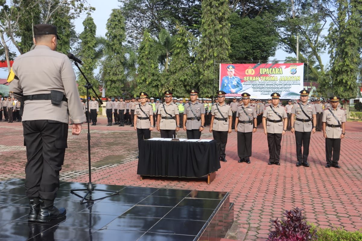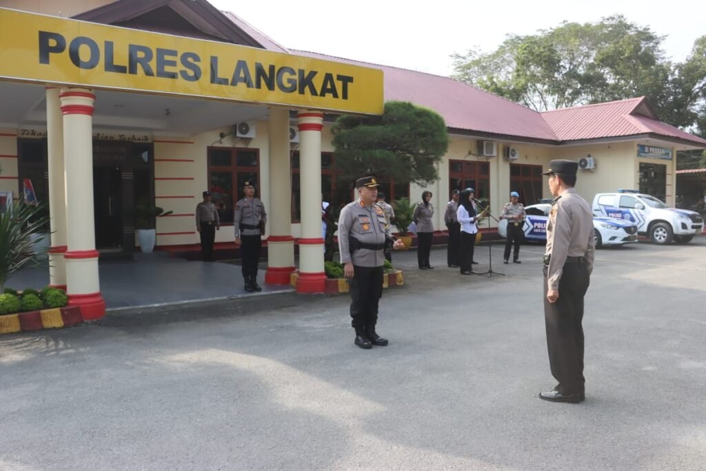 Upacara Serah terima jabatan di ikuti oleh para Kabag, PJU, Kapolsek Jajaran Polres Langkat, personel dan Bhayangkari Polres Langkat.