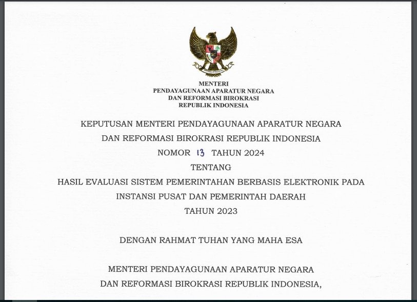 Wildan mengatakan, predikat yang cukup memuaskan itu tertuang didalam Keputusan Menteri Pendayagunaan Aparatur Negara dan Reformasi Birokrasi (PAN-RB) Nomor 13 Tahun 2024 tentang Hasil Evaluasi SPBE Pada Instansi Pusat dan Pemerintah Daerah Tahun 2023 dengan torehan nilai indeks sebesar 2,91.