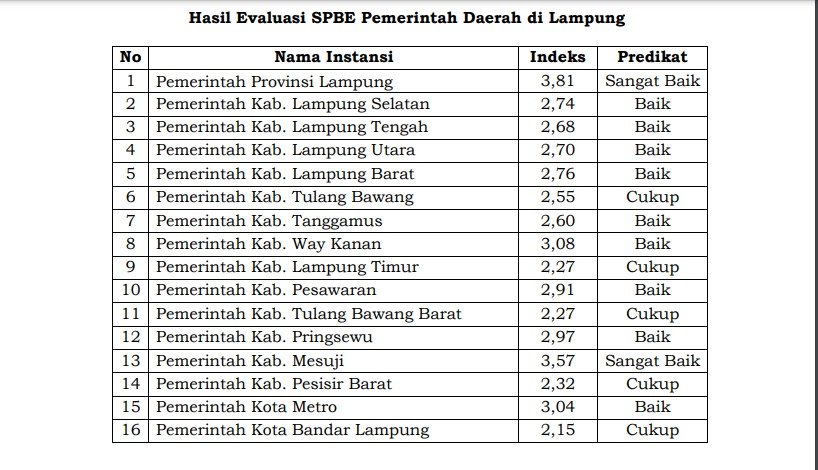 MEDIAINVESTIGASIMABES.CO.ID | – Pesawaran (LAMPUNG) meraih predikat “Baik” dalam implementasi Sistem Pemerintahan Berbasis Elektronik (SPBE) Tahun 2023.