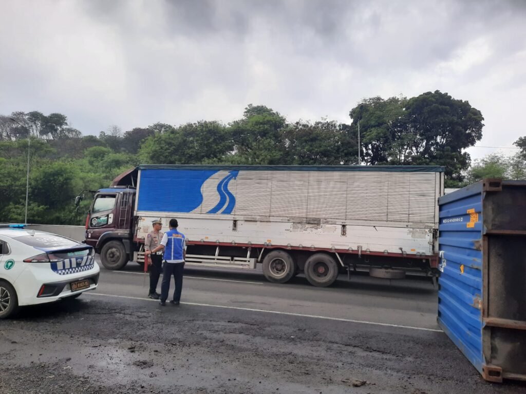 Dalam insiden kecelakaan tersebut, Truk Kontainer bernomor polisi B 9590 WV yang melaju dari arah Jakarta menuju Bandung, terguling melintang menutup ruas jalur.