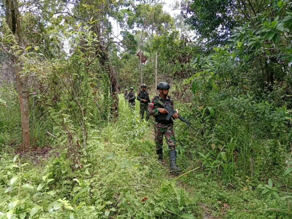MEDIAINVESTIGASIMABES.CO.ID | Mappi, –Dalam rangka menjaga stabilitas keamanan di wilayah penugasan, jajaran pos satgas pamtas kewilayahan Yonif 125/SI’MBISA salah satunya Pos Venaha melakukan kegiatan patroli keamanan di seputaran wilayah kampung Sahapikiya, Distrik Venaha, Kabupaten Mappi. Rabu (13/03/2024).