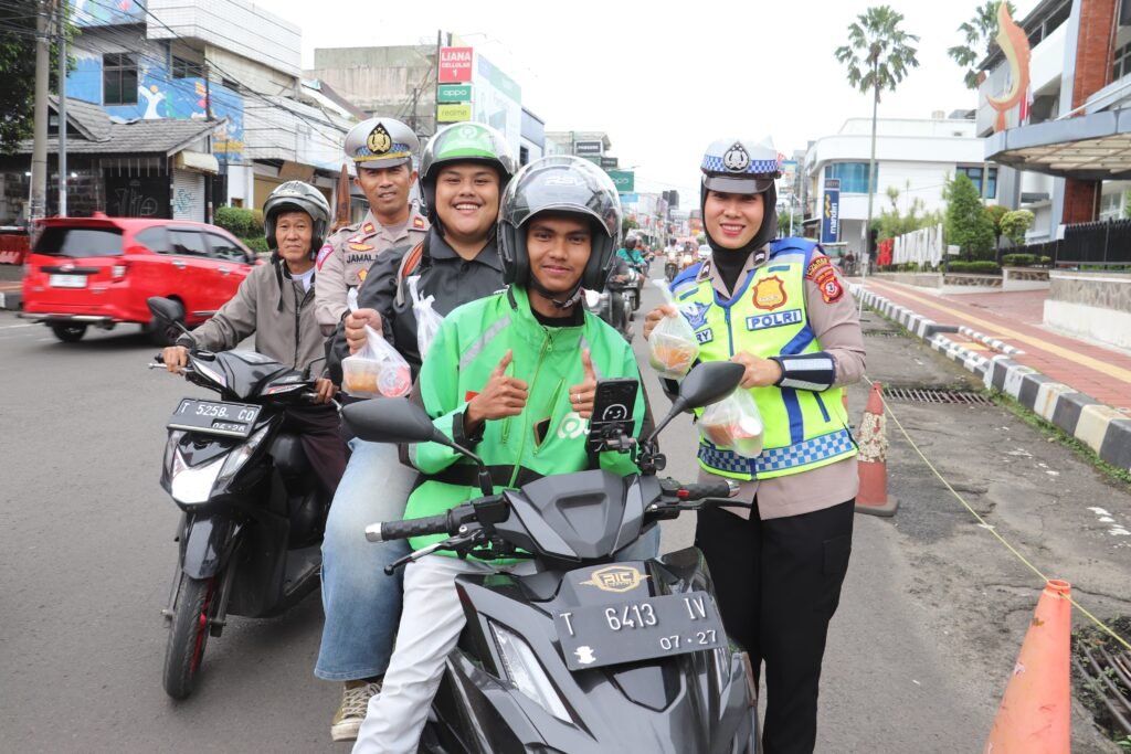 MEDIAINVESTIGASIMABES.CO.ID | PURWAKARTA – Satuan Lalulintas (Satlantas) Polres Purwakarta bagi-bagi takjil kepada masyarakat yang melintas di Jalan Jenderal Sudirman, Kelurahan Nagritengah, Purwakarta, pada Jumat, 15 Maret 2024.