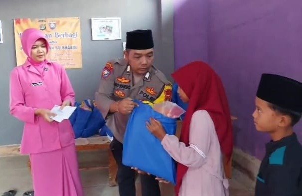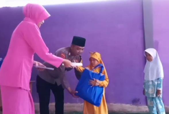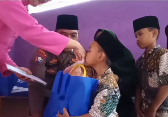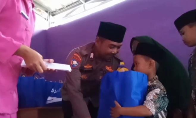 Dengan menyisihkan gaji serta remonerasi yang di dapatnya setiap bulan, Pak Bhabin memberikan santunan dan bingkisan berisi sembako kepada puluhan anak yatim dan piatu yang ada di Kampung setempat.
