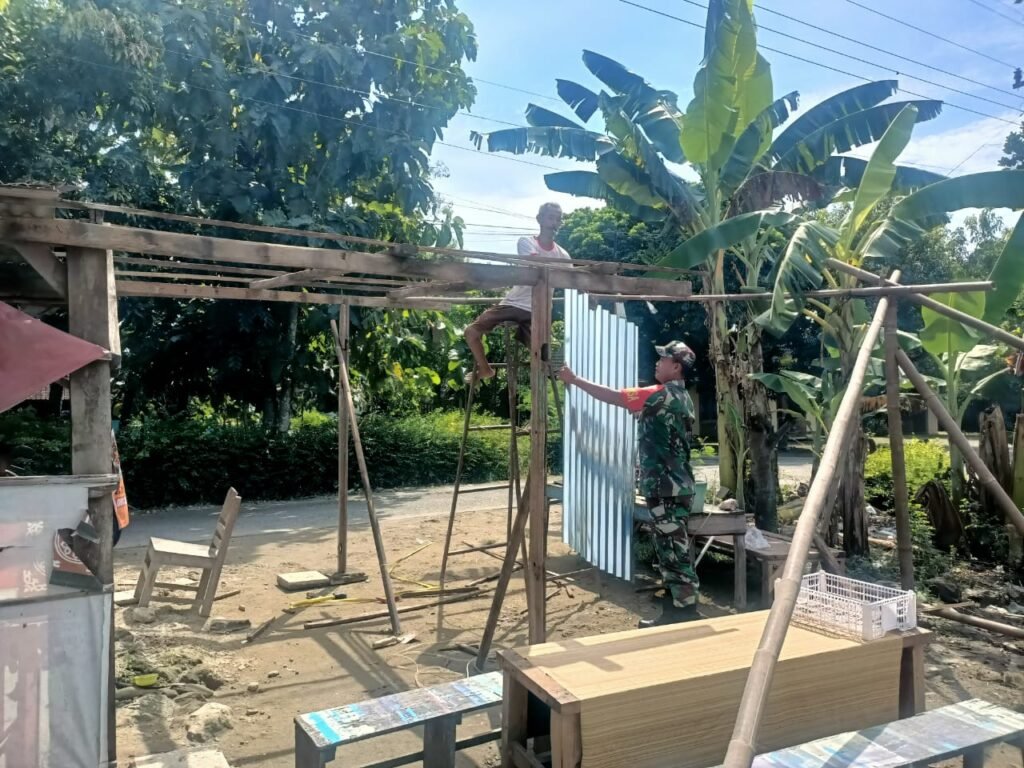 MEDIAINVESTIGASIMABES.CO.ID | Sragen – Upaya mendukung usaha kecil warga di wilayah binaan, Serka Slamet Sriyanto Babinsa Desa Geneng Koramil 16/Miri Kodim 0725/Sragen melaksanakan Bakti TNI membantu pembangunan kios milik Bp Sumardi di Dk Karang RT 01 Ds Geneng Kec Miri, Jum’at ( 19/04/2024 )