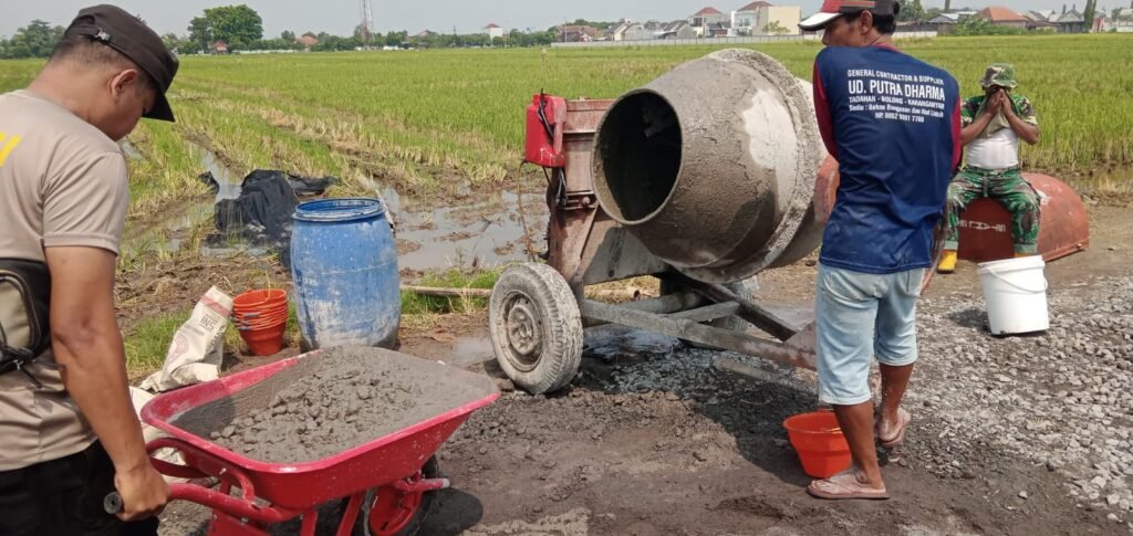 MEDIAINVESTIGASIMABES.CO.ID | Sukoharjo – Salah satu sasaran fisik TMMD Reguler ke 120 Kodim 0726/Sukoharjo TA. 2024 adalah Pengecoran Jalan, pada sasaran fisik ini pekerjaan fokus kepada penghamparan material urug berupa campuran pasir dan batu split serta tanag urug. Sementara anggota Satgas dan masyarakat juga tampak mulai melaksanakan pengadukan adonan cor dengan mesin molen dan pelangsiran material.(10/05/24)
