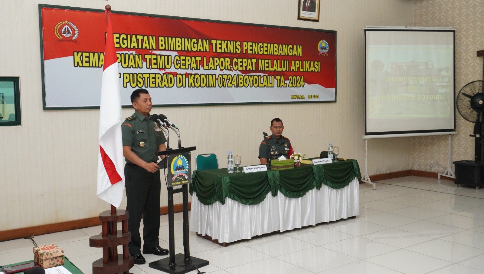 MEDIAINVESTIGASIMABES.CO.ID | Boyolali – Kodim 0724/Boyolali menerima bimbingan teknis (bimnis) pengembangan kemampuan temu cepat lapor cepat (TCLC) dari Pusterad yang dipimpin Brigjen TNI Agus Prasetyo Ari Wibowo di Ruang Data Kodim 0724/Boyolali, Jl. Padanaran Desa Tegalmulyo Kecamatan Mojosongo Kabupaten Boyolali. Kamis ( 16/05/24)