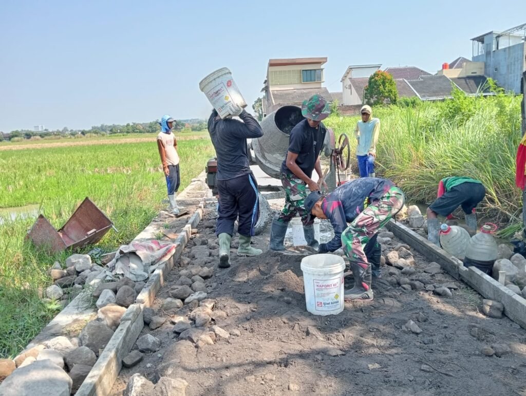 MEDIAINVESTIGASIMABES.CO.ID | Sukoharjo – Sasaran fisik TMMD Reguler Ke – 120 Tahun 2024 Kodim 0726/Sukoharjo berupa Pembuatan Talud dan pengecoran jalan di dukuh Pabrik, desa Wirun, Kecamatan Mojolaban tanpa kendala dan pekerjaan terus dikerjakan dengan lancar hingga hari ini. Sisa waktu kurang kurang dari tiga minggu ini progress pekerjaan cukup bagus dan terus bergesaer. (24/05/24)