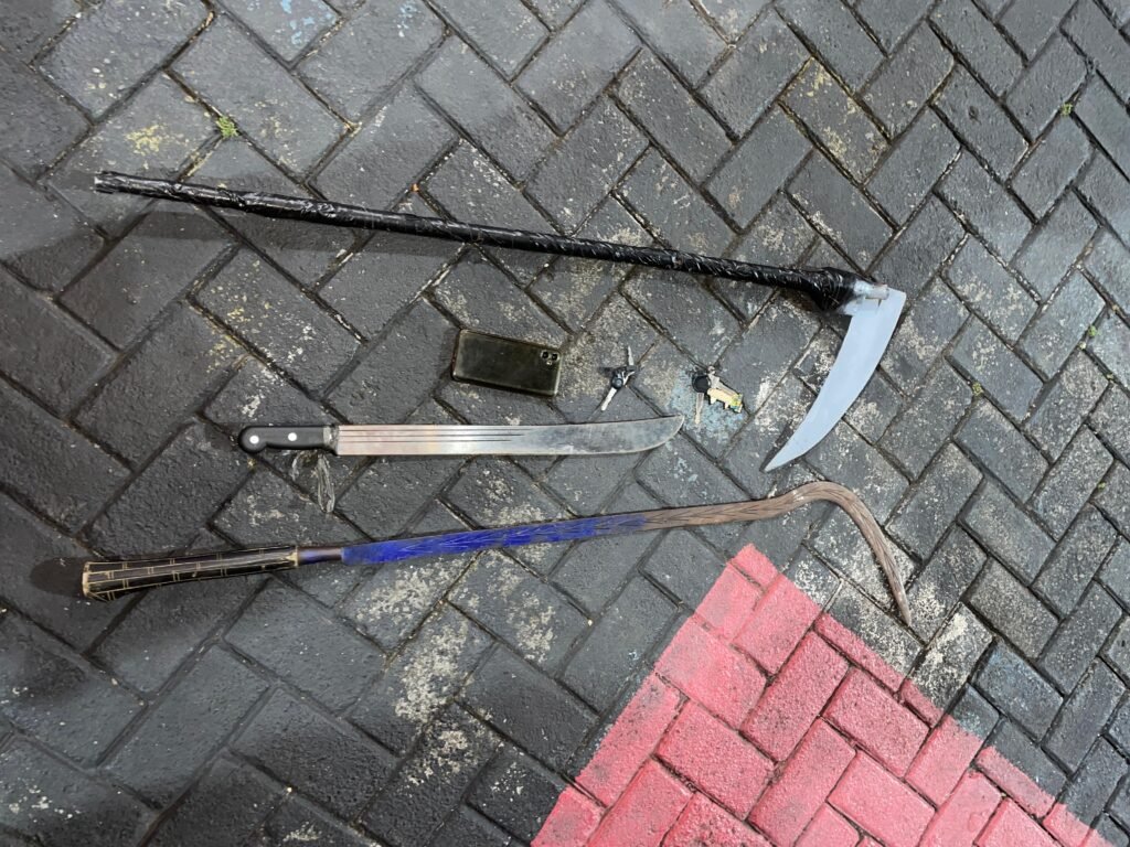 Dalam penangkapan tersebut, petugas juga berhasil menyita berbagai senjata tajam, termasuk golok dan cocor bebek.