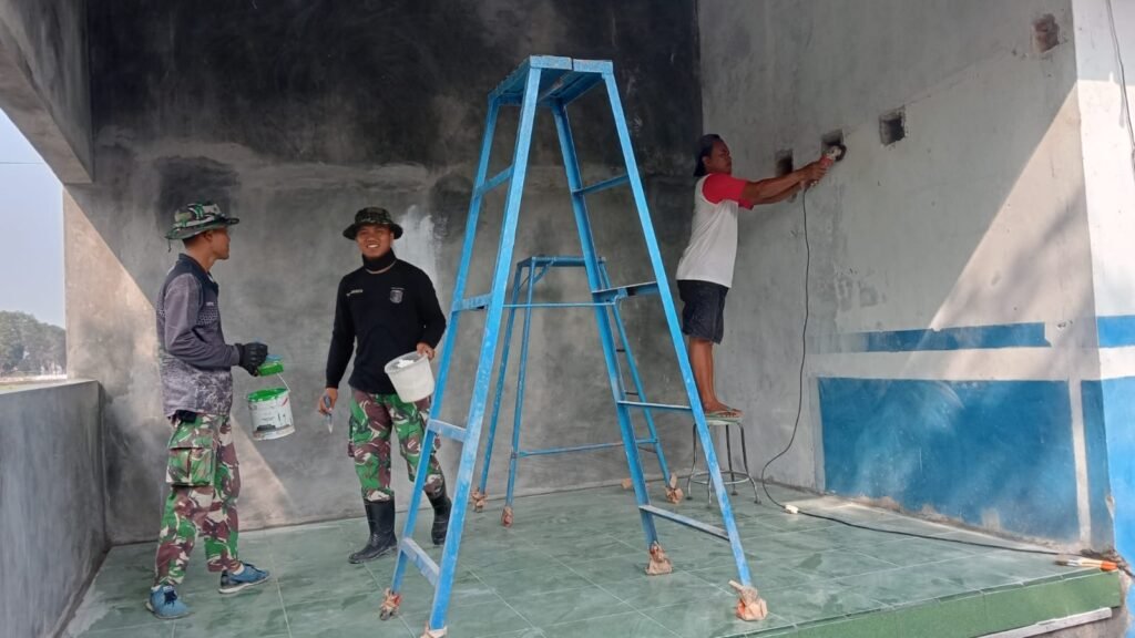 MEDIAINVESTIGASIMABES.CO.ID | Sukoharjo-Anggota Satgas TMMD ke 120 Kodim 0726/Sukoharjo bersama masyarakat bergotong royong melakukan pengecatan Poskamling, Minggu(02/06/2024).