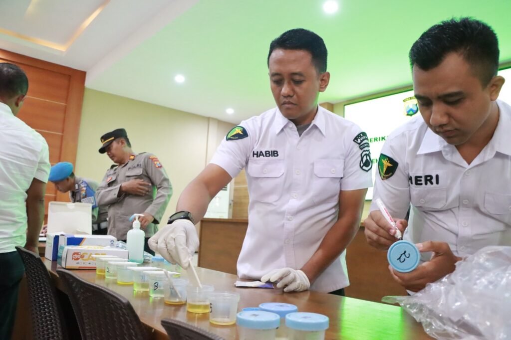 Tes urine ini dilakukan untuk mencegah penyalahgunaan narkoba di lingkungan kerja Polres Kediri.