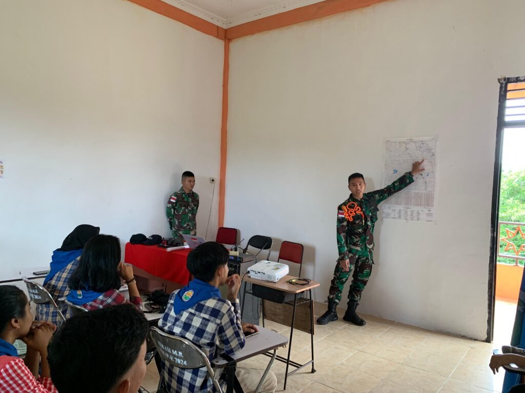 MEDIAINVESTIGASIMABES.CO.ID | Sanggau, –Satgas Pamtas RI-Malaysia Yonarmed 16/TK Pos Kotis Gabma Entikong yang dipimpin oleh Dansimayon Satgas Srt Nanang beserta 2 orang anggota lainnya melaksanakan kegiatan gadik pelatihan Navigasi Darat di STKIP Melawi, kec. Entikong, kab. Sanggau. Minggu (9/6/2024)