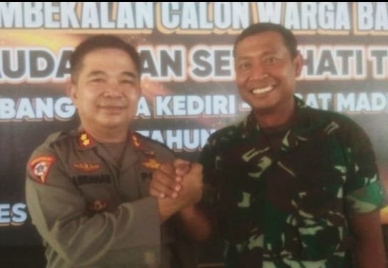 Sinergitas antara TNI-Polri terus terjalin, kali ini Polres Kediri Kota bersama Kodim 0809/Kediri memberikan pembekalan kepada sejumlah calon warga Padepokan silat Persaudaraan Setia Hati Terate (PSHT) Cabang Kota Kediri, Minggu (9/6/2024)
