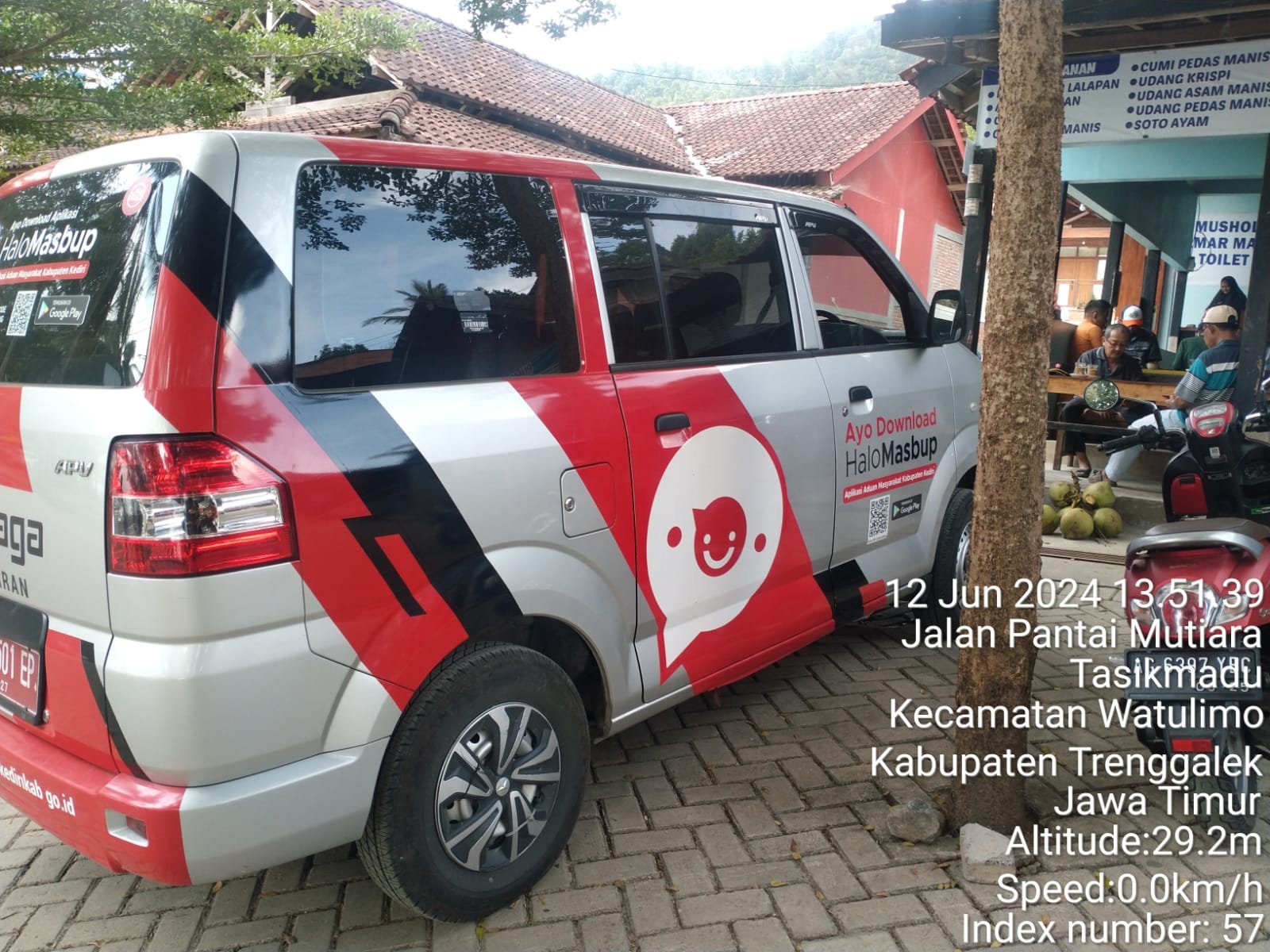 Tampak terkejut salah satu mobil siaga dengan logo mobil siaga dan tampak jelas berada di wilayah wisata tersebut.