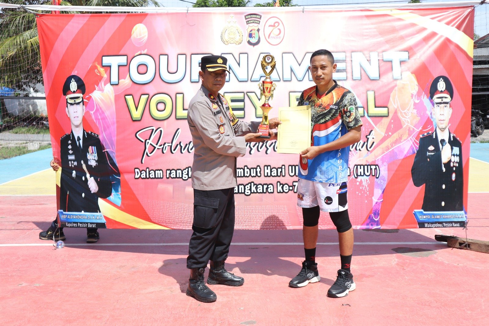 MEDIAINVESTIGASIMABES.CO.ID | Pesisir Barat – Polres Pesisir Barat menggelar acara penutupan dan pembagian hadiah Turnamen Voli yang diadakan dalam rangka memperingati Hari Ulang Tahun Bhayangkara ke-78 di lapangan Regaga, Jl. Kuala Stabas Pasar Mulia, Kel. Pasar Krui, Kec. Pesisir Tengah, Kab. Pesisir Barat. Sabtu (29/06/24)