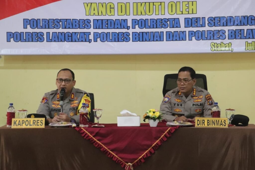 MEDIAINVESTIGASIMABES.CO.ID | Langkat – Polres Langkat menjadi tuan rumah kegiatan Supervisi Dit Binmas Polda Sumut yang dilaksanakan di Aula Baradaksa Polres Langkat, Jl. Proklamasi. 53 Kabupaten Langkat. Acara ini dihadiri oleh jajaran Polres Langkat, Polres Binjai, Polrestabes Medan, Polres Belawan,dan Polres Deli Serdang, dengan tujuan memperkuat koordinasi dan efektivitas program pembinaan masyarakat di wilayah hukum Polda Sumut.(Senin, 29/07/2024.)
