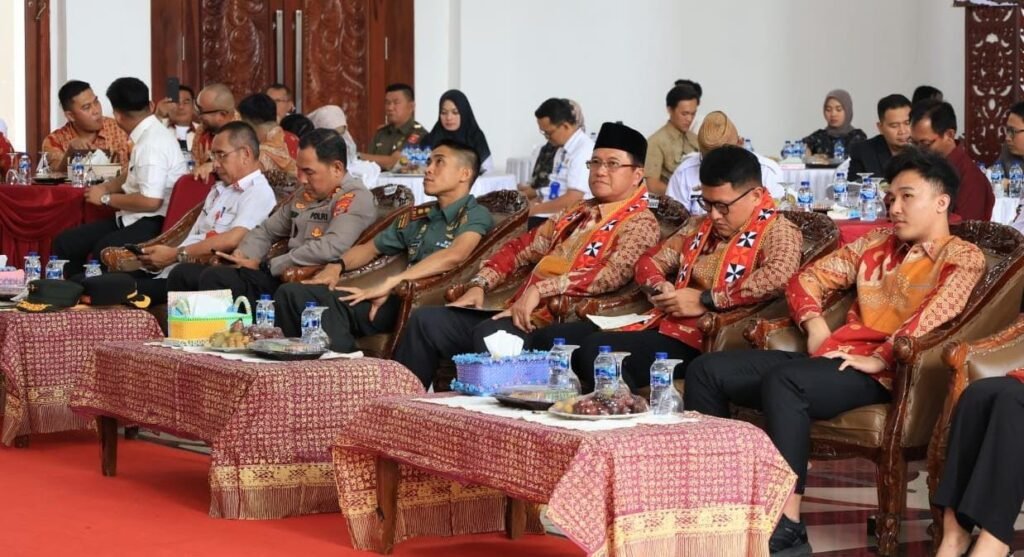 MEDIANVESTIGASIMABES.CO.ID | Lampung Barat – Letkol Inf Rinto Wijaya, S.A.P., M.I.POL., M.Han Komandan Komandan Kodim 0422/Lampung Barat Bersama Penjabat (Pj) Bupati Lampung Barat Drs. Nukman M.M & jajaran Forkopimda, menghadiri pelantikan Badan Pengurus Cabang Himpunan Pengusaha Muda Indonesia (BPC HIPMI) Kabupaten Lampung Barat untuk periode 2024-2027 di Lamban Pancasila Kecamatan Balik Bukit, Kamis 08 Agustus 2024.