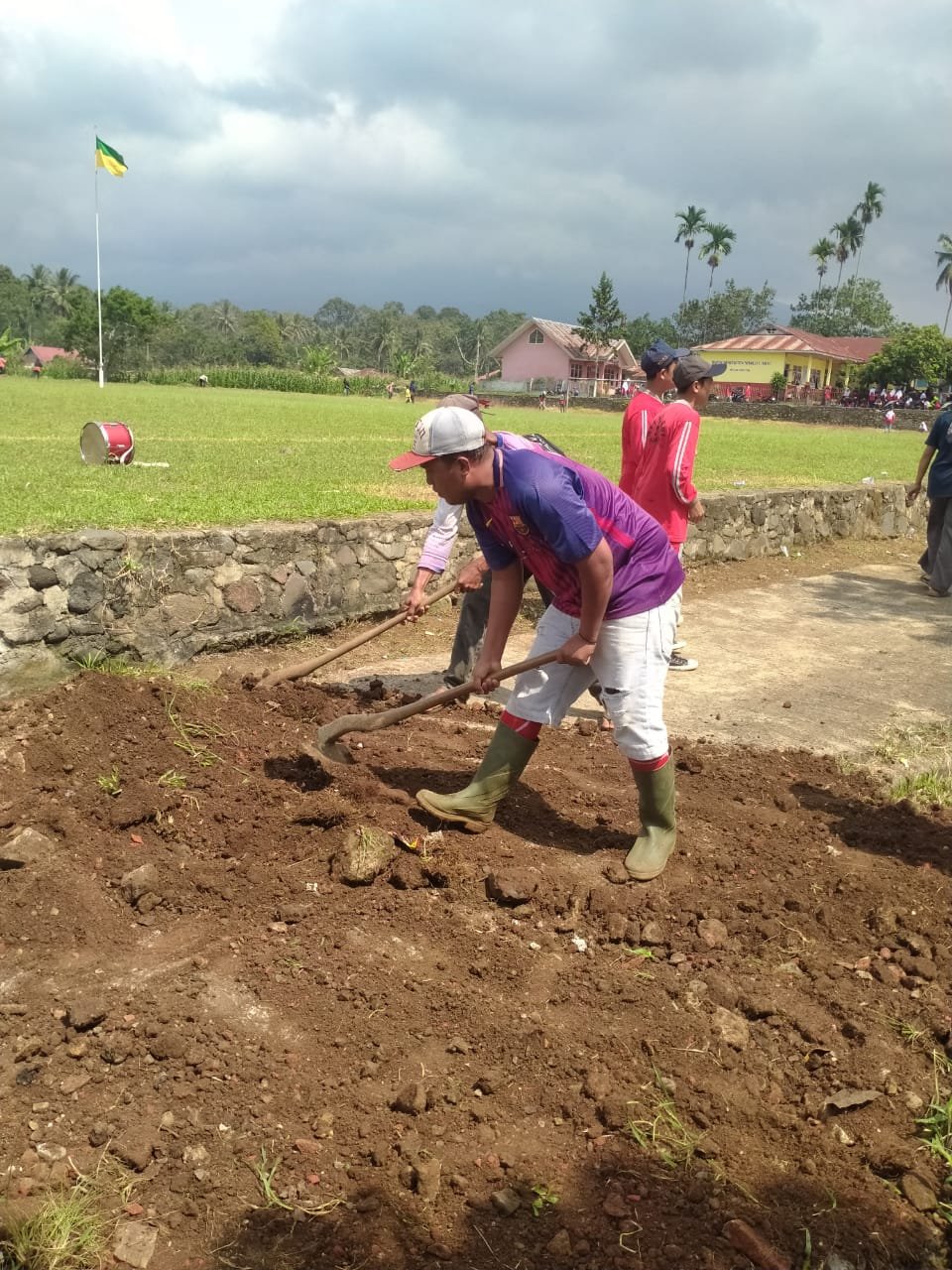 Tampak antusias pemuda dan masyarakat sumanik bekerja membersihkan pagar dan lapangan bola tersebut.acara ini dilaksanakan hari ini dari pagi jam9.00Wib sampai selesai.( Yan Rantai)
