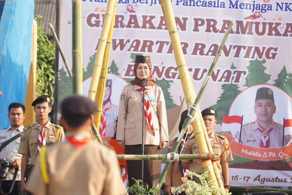 MEDIAINVESTIGASIMABES.CO.ID | Pesisir Barat (Lampung) – Ketua Kwartir Cabang (Kwarcab) Gerakan Pramuka Kabupaten Pesisir Barat (Pesibar), Septi Heri Agusnaeni, S.E., M.H., menghadiri upacara pembukaan perkemahan Kwartir Ranting (Kwaran) Bangkunat, di lapangan Pekon Sumber Rejo Kecamatan Bangkunat, Kamis (15/8/2024)