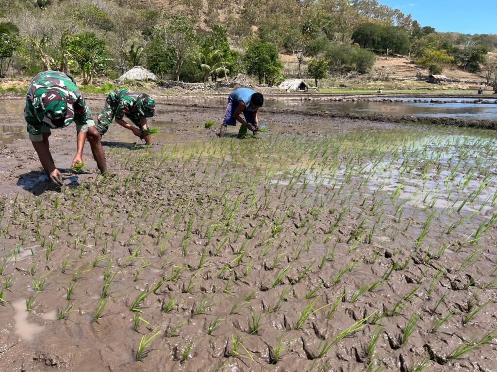 MEDIAINVESTIGASIMABES.CO.ID | Tasinifu, NTT – Dalam rangka meningkatkan ketahanan pangan lokal, Pos Aplal Satgas Yonkav 6/Naga Karimata melaksanakan penanaman padi bersama masyarakat Desa Tasinifu, Kec. Mutis, Kab.TTU, Prov.NTT.(16/8/24)