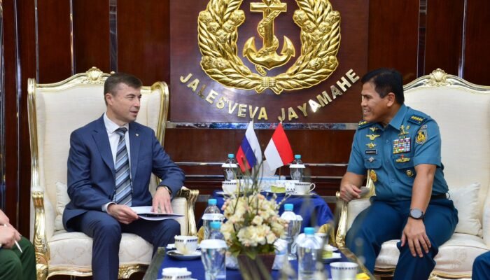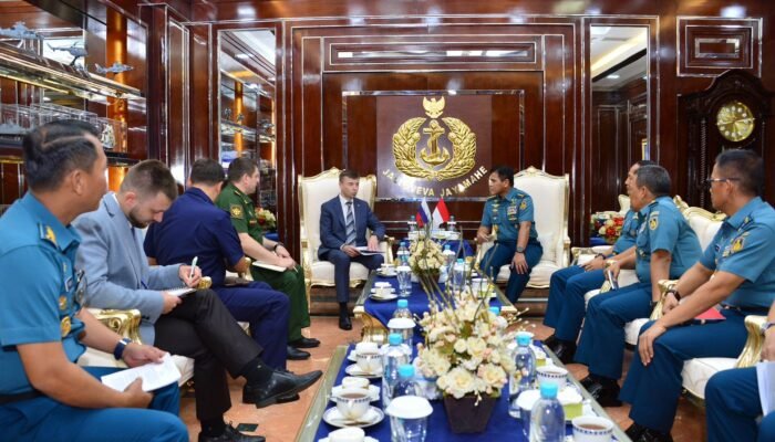 MEDIAINVESTIGASIMABES.CO.ID | JAKARTA – Kepala Staf Angkatan Laut (Kasal) Laksamana TNI Dr. Muhammad Ali didampingi Wakasal Laksamana Madya TNI Erwin S. Aldedharma menerima courtesy call Duta Besar Luar Biasa dan Berkuasa Penuh Federasi Rusia untuk Republik Indonesia Rusia H.E. Mr. Sergei Gennadievich Tolchenov bertempat di Admiral Room, Gedung Utama Mabesal, Cilangkap, Jakarta Timur. Senin (09/09/2024).