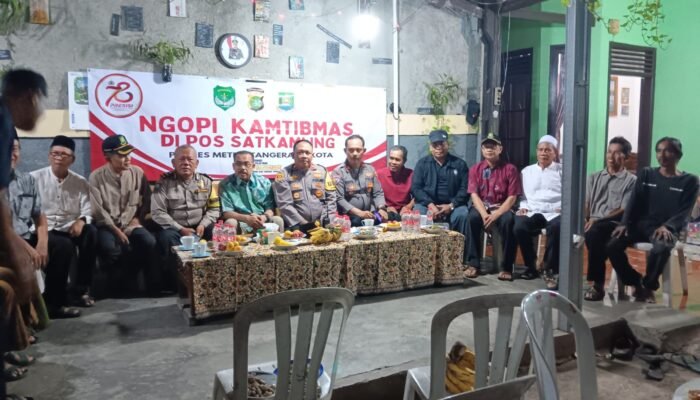 MEDIAINVESTIGASIMABES.CO.ID | Ciledug – Program ngopi kamtibmas yang dilaksanakan Kapolsek Ciledug Kompol Ubaidillah,SH.MA bersama Jajaran serta Lurah Sudimara Selatan Bapak H. Junaidi,S.Sos, Tokoh Agama, Tokoh Masyarakat dan warga di Pos Satkamling Jl. Beringin RT 02/09 Kel. Sudimara Selatan Kec. Ciledug Kota Tangerang.