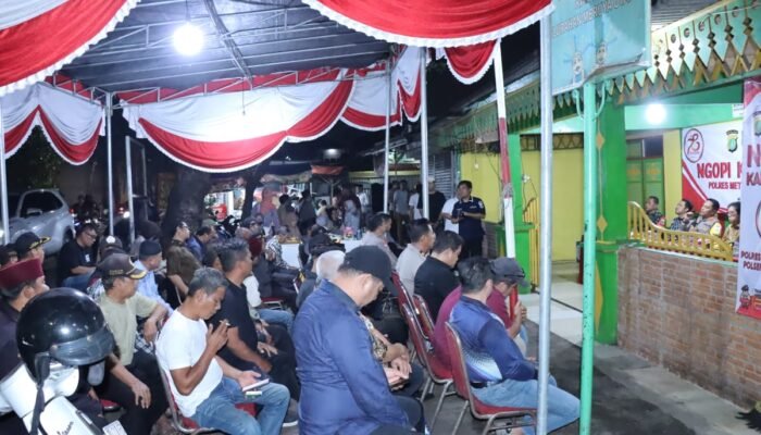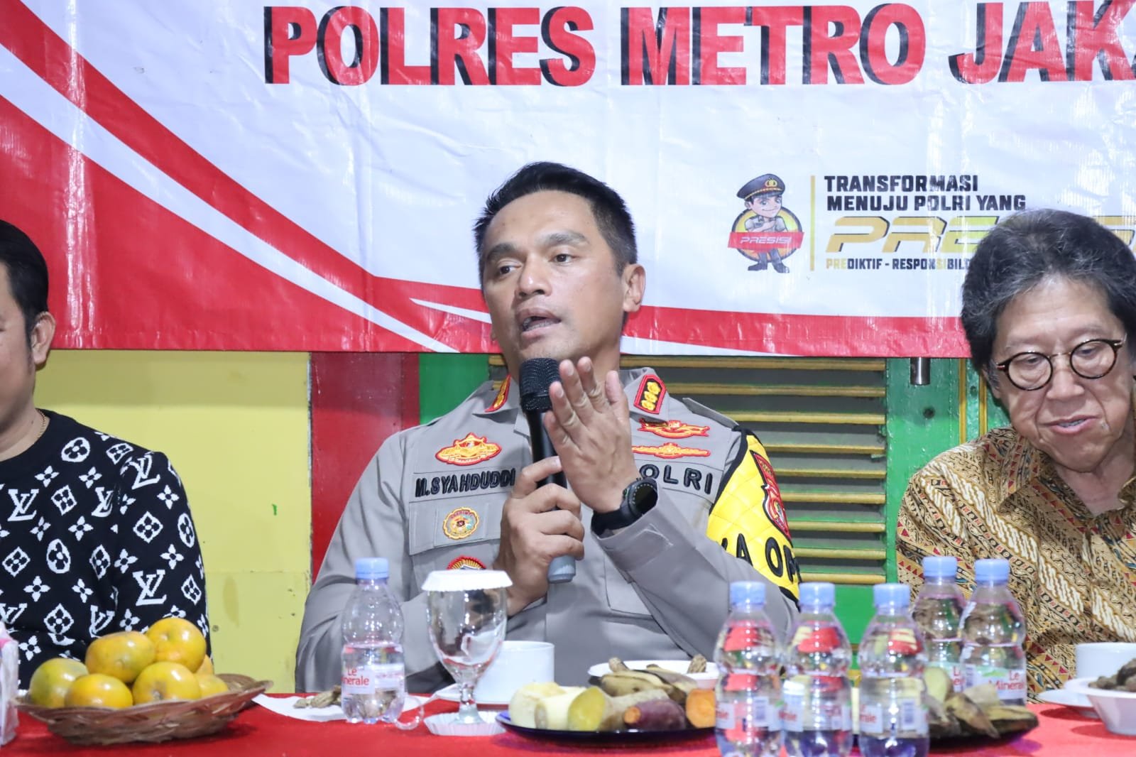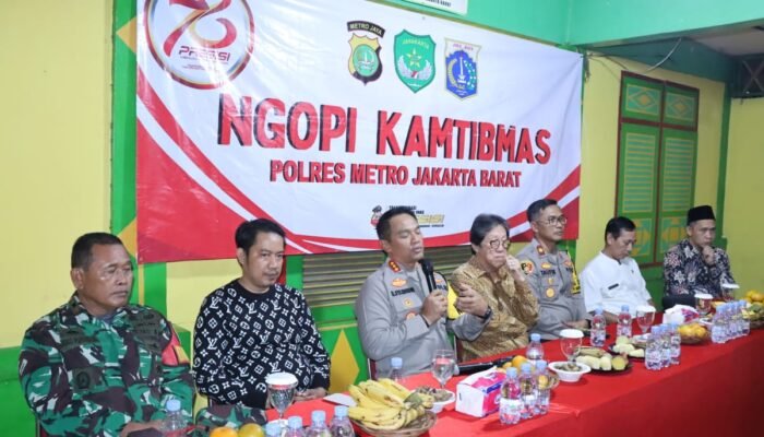 MEDIAINVESTIGASIMABES.CO.ID | Jakarta Barat – Kapolres Metro Jakarta Barat, Kombes Pol M Syahduddi, melaksanakan kegiatan Ngopi Kamtibmas bersama warga RW 10 Meruya Utara, Kembangan, Jakarta Barat, pada Jumat (13/9/2024).