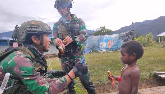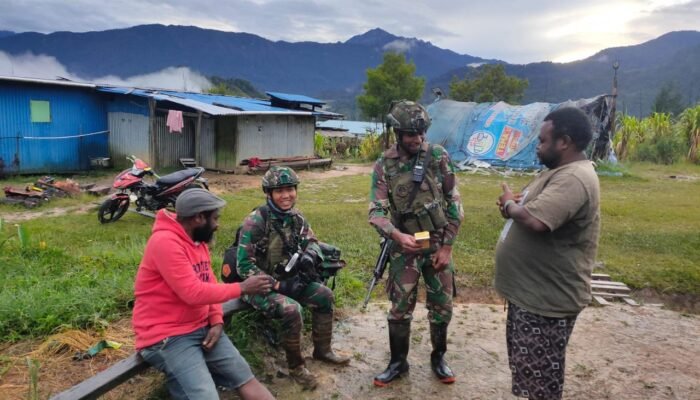 MEDIAINVESTIGASIMABES.CO.ID | ILAGA – Pembinaan Teritorial terus dilakukan Satgas Pamtas Mobile Yonif 323 Buaya Putih, kali ini Prajurit Buaya Putih dari TK Gome melaksanakan Komunikasi Sosial (Komsos) dengan melakukan kunjungan ke rumah Bapak Abelum Kogoya selaku Kepala Suku Besar Dani dan masyarakat lainnya di sekitar TK Gome, di Distrik Ilaga, Kabupaten Puncak, Papua Tengah, Sabtu (14/09/2024).