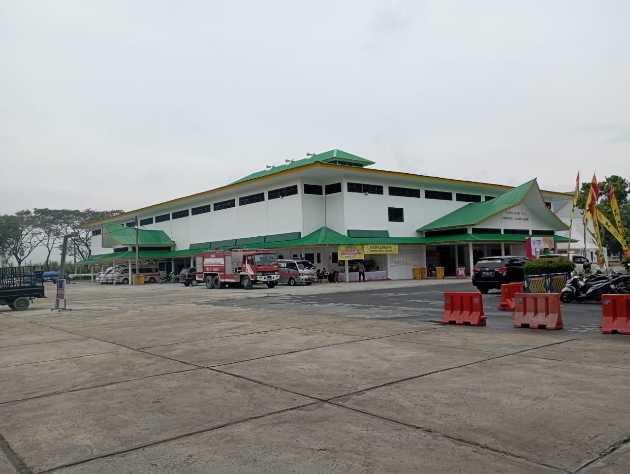 Terpantau, diluar Gedung Serba Guna Manunggal Langkat Berseri tampak lokasi parkir kendaraan peserta maupun pengunjung yang sudah bersemen keras, rampung dan bebas becek.