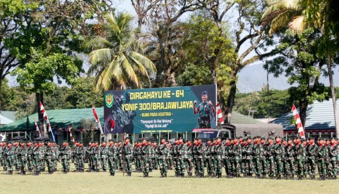 Keluarga Kehormatan Dikukuhkan, Upacara Peringatan HUT Yonif 300/Brajawijaya Ke-64 Sukses Digelar
