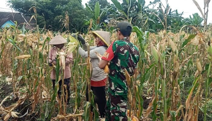 MEDIAINVESTIGASIMABES.CO.ID | Blimbingsari – Babinsa Koramil 0825-12/Rogojampi Serda Susanto melaksanakan pendampingan kepada petani dalam memanen jagung milik Bapak Sumitro anggota Poktan Sumber Makmur di Desa Gintangan Kecamatan Blimbingsari Kabupaten Banyuwangi. Rabu (18/09/2024).