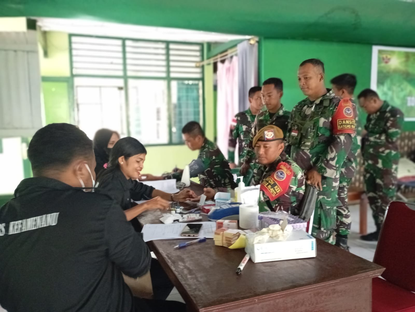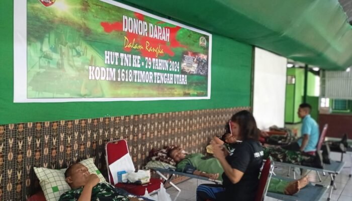 MEDIAINVESTIGASIMABES.CO.ID | Kefamenanu, — Berkontribusi aktif dalam membantu masyarakat, Prajurit Mako Satgas Yonarhanud 15/ Dahana Bhaladika Yudha melaksanakan donor darah gratis yang ada di Kota Kefamenanu, Kab. TTU, Prov. NTT. (11/5/2024).