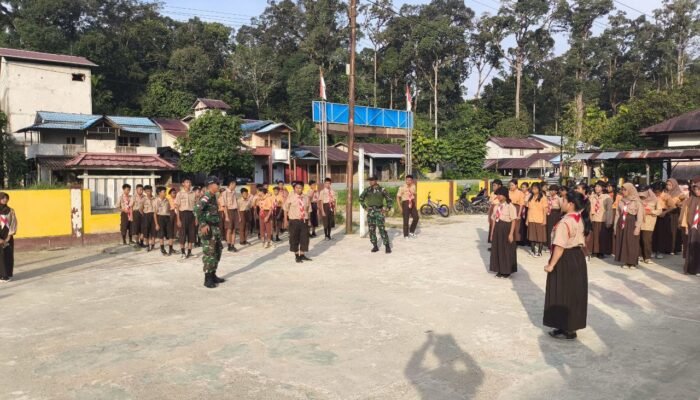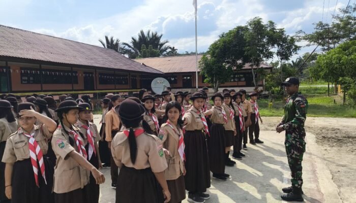 MEDIAINVESTIGASIMABES.CO.ID | Sambas, — Melatih Pramuka sejak dini sebagai bentuk kedisiplinan, inilah yang dilakukan prajurit Pos Gabma Sajingan Satuan Tugas Pengamanan Perbatasan (Satgas Pamtas) RI-Malaysia Yonkav 12/BC yang dilakukan dengan cara menjadi tenaga pendidik (Gadik) pramuka, khususnya dalam bidang kepramukaan atau melatih pembinaan pramuka kepada siswa-siswi SMPN 1 Sajingan Besar, Dusun Kranji, Desa Kaliau, Kec. Sajingan Besar, Kab. Sambas, Kalbar. Sabtu (21/09/2024)