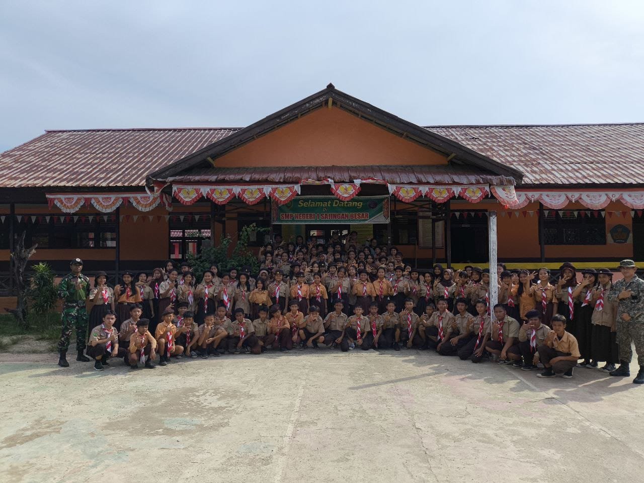 MEDIAINVESTIGASIMABES.CO.ID | Sambas, — Melatih Pramuka sejak dini sebagai bentuk kedisiplinan, inilah yang dilakukan prajurit Pos Gabma Sajingan Satuan Tugas Pengamanan Perbatasan (Satgas Pamtas) RI-Malaysia Yonkav 12/BC yang dilakukan dengan cara menjadi tenaga pendidik (Gadik) pramuka, khususnya dalam bidang kepramukaan atau melatih pembinaan pramuka kepada siswa-siswi SMPN 1 Sajingan Besar, Dusun Kranji, Desa Kaliau, Kec. Sajingan Besar, Kab. Sambas, Kalbar. Sabtu (21/09/2024)
