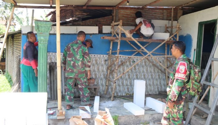 Anggota yang tergabung Satuan Tugas (Satgas) TMMD 122 bersama warga terus berupaya semaksimal mungkin bahu membahu merenovasi musholla Al-Aziz, terlihat hari ini mereka sedang mempercantik mushola dengan melaksanakan pengecatan dinding dan perbaikan tempat Wudhu. Senin, (7/10/2024).
