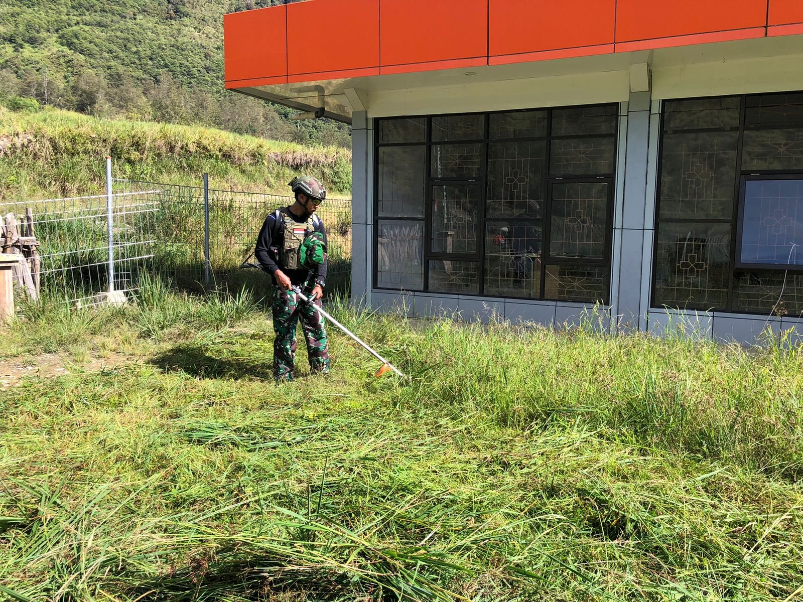 MEDIAINVESTIGASIMABES.CO.ID | Ilaga Utara Puncak, MediaHabema – One of the military units under the command of the Indonesian Armed Forces Operational Command HABEMA, the Task Forces of the Raider Infantry Battalion 323/Buaya Putih Kostrad, is currently conducting mobile security at the border of Indonesia and Papua New Guinea, especially in the Puncak Regency, Papua Tengah Province. On Thursday, 10 October 2024, the 323 Task Forces, especially the Mayuberi Post led by First Lieutenant Yudo, implemented the results of Social Communication with the Leader and Staff of the Mayuberi Community Hospital to hold a community service cleaning the hospital’s yard. This implementation of the community service commemorates the 79th anniversary of the Indonesian Armed Forces (TNI).