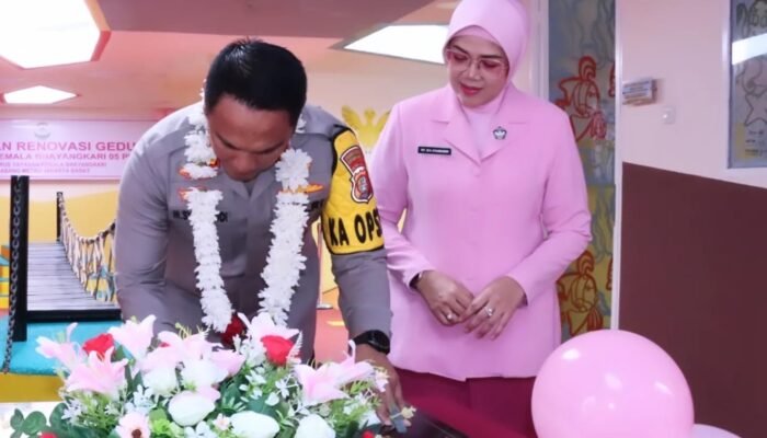 MEDIAINVESTIGASIMABES.CO.ID | Jakarta Barat – Kapolres Metro Jakarta Barat Kombes Pol M. Syahduddi, bersama Ketua Bhayangkari Cabang Metro Jakarta Barat, Ny. Ika Syahduddi dan segenap pejabat utama Polres Metro Jakarta Barat, meresmikan renovasi pembangunan TK Kemala Bhayangkari 05 di Pesing, Kebon Jeruk, Jakarta Barat.