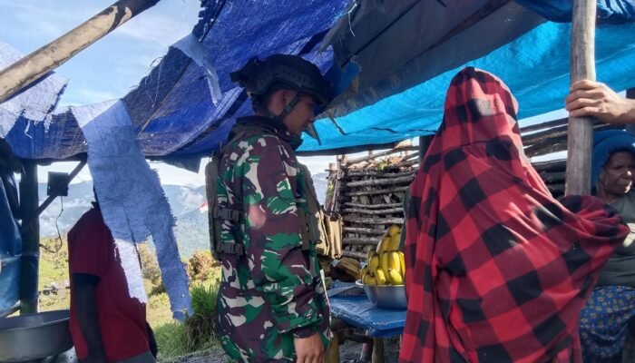 MEDIAINVESTIGASIMABES.CO.ID | Mageabume Puncak, MediaHabema – Satuan Tugas Batalyon Infanteri (Satgas Yonif) Raider 323/Buaya Putih Kostrad, salah satu Satuan Jajaran Komando Operasi HABEMA di Papua, tengah melaksanakan tugas Operasi Pengamanan Perbatasan Mobil RI-PNG, di wilayah Kabupaten Puncak, Provinsi Papua Tengah. Pada hari Minggu, 20 Oktober 2024, Satgas Yonif 323 Kostrad, khususnya Pos Pintu Jawa pimpinan Lettu Inf Caroko, melaksanakan program ROSITA atau Borong Hasil Tani milik warga Kampung Amuleme, Distrik Mageabume, yang menjual hasil taninya kepada para Prajurit HABEMA.