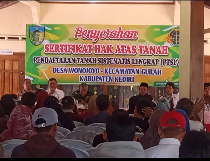 Hadir dalam kegiatan tersebut, Kepala Desa Wonojoyo berserta perangkatnya, Tim petugas dari Kantor BPN Kediri, Bhabinkamtibmas dan Babinsa Desa Wonojoyo, Pokmas, Serta Ribuan penerima sertifikat.