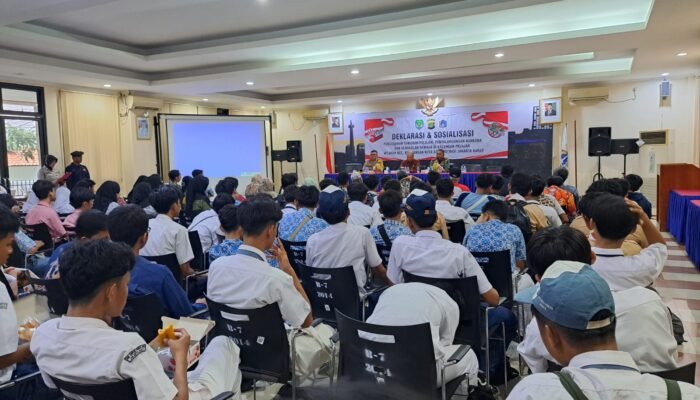 Para pelajar dengan semangat mengucapkan deklarasi, berjanji untuk menjauhi segala bentuk kenakalan remaja, menjaga pertemanan yang sehat, dan berkomitmen untuk fokus pada pendidikan mereka.