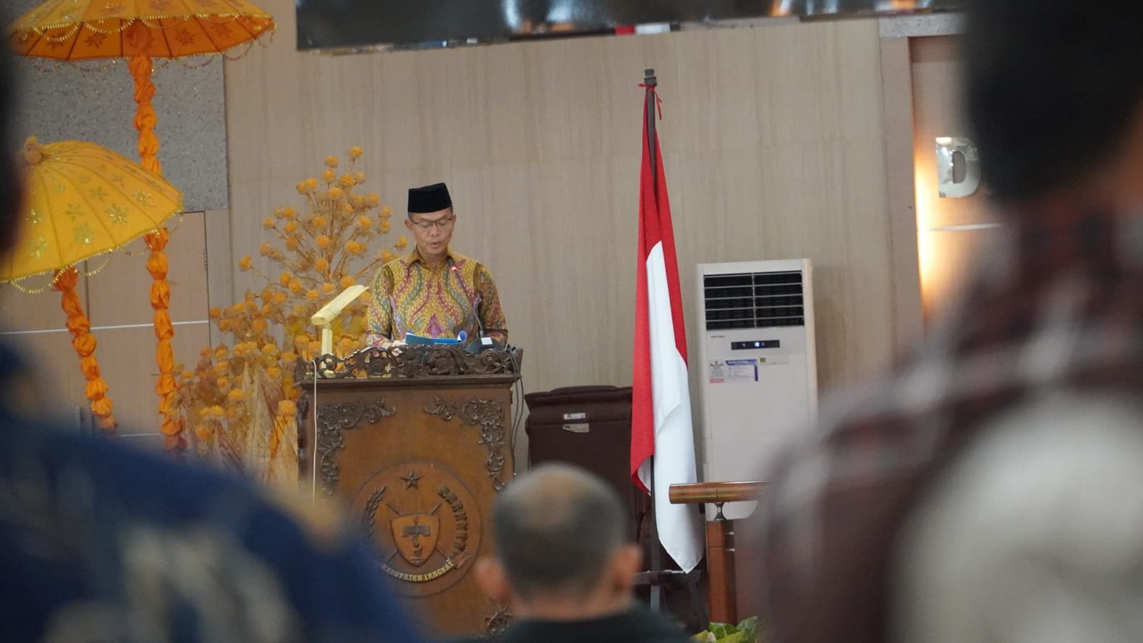 Pj. Bupati Langkat, H. M. Faisal Hasrimy, AP, M.AP., melalui Sekretaris Daerah Kabupaten Langkat, H. Amril, S.Sos., M.AP., menghadiri Rapat Paripurna DPRD Kabupaten Langkat pada Kamis, 24 Oktober 2024. Agenda utama rapat ini adalah pembentukan fraksi-fraksi dan penetapan susunan pimpinan serta anggota fraksi DPRD periode 2024-2029. Acara ini diselenggarakan di Gedung DPRD Langkat, Stabat.