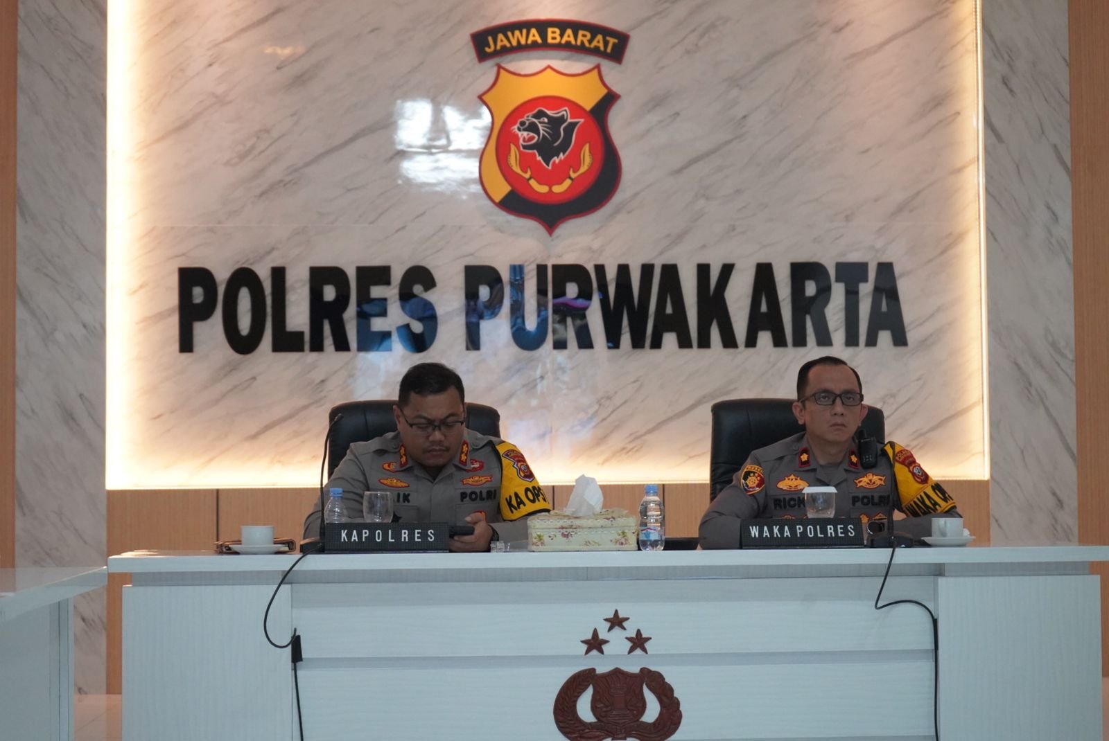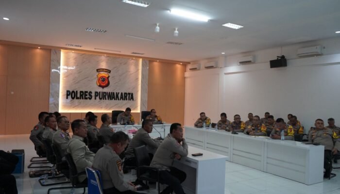 MEDIAINVESTIGASIMABES.CO.ID | PURWAKARTA – Kapolres Purwakarta, AKBP Lilik Ardiansyah didampingi Wakapolres, Kompol Ricky Ardipratama serta pejabat utama Polres Purwakarta ikuti video conference (vicon) arahan Kapolri, Jenderal Polisi Listyo Sigit Prabowo, di Aula Persisi Mapolres Purwakarta, Pada Senin, 28 Oktober 2024, sore.