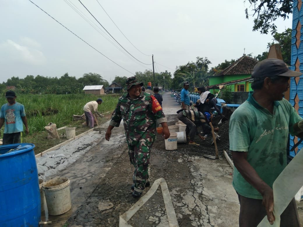 Dalam hal ini Sertu Agung Purwanto tanpa ragu mengangkat ember dan mengaduk campuran material bersama warga, untuk memperkeras jalan Desa di wilayah binaan, karena akses jalan tersebut sangat penting dan memudahkan pengguna jalan di Desa tersebut.