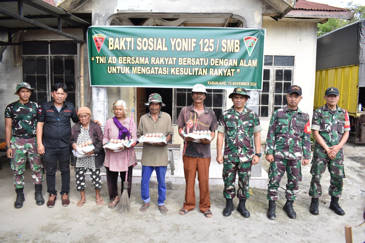 Pasiintel Yonif 125/SMB Lettu Inf Hasudungan Sinaga selaku kordinator lapangan pada kegiatan ini menyampaikan, berbagai kegiatan yang dilaksanakan meliputi karya bakti dan bakti sosial berupa pembagian 1.000 butir telur dan 300 kg beras.