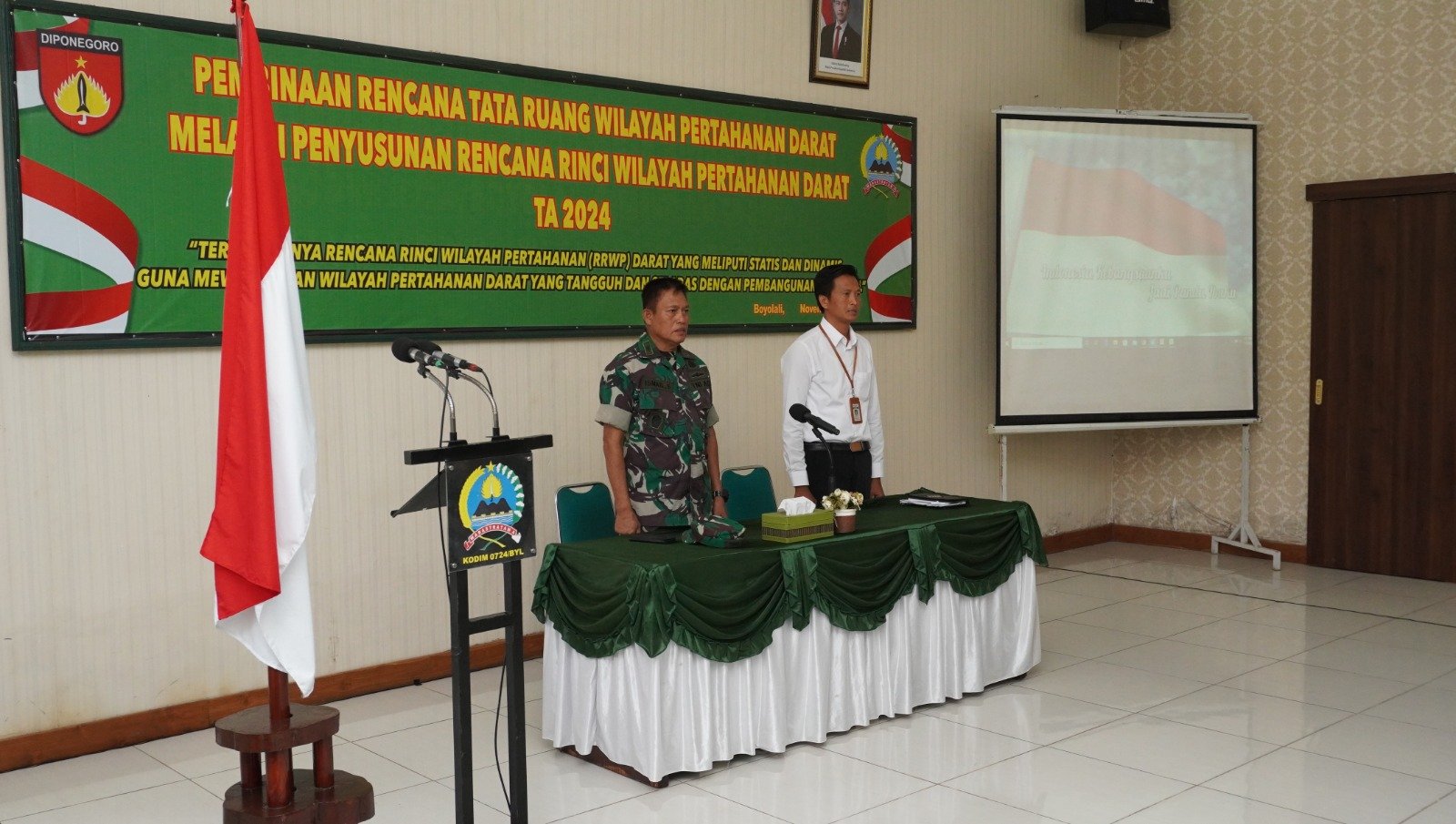 MEDIAINVESTIGASIMABES.CO.ID | Boyolali – Kodim 0724/Boyolali Laksanakan Kegiatan Pembinaan Tata Ruang Pertahanan Darat diwilayah Kodim 0724/Boyolali dengan tema “ Terwujudnya rencana rinci wilayah pertahanan (RRWP) Darat yang meliputi statis dan dinamis mewujudkan wilayah pertahanan darat yang tangguh dan selaras dengan pembangunan nasional “ Kegiatan ini resmi dibuka oleh Kepala Staf Kodim 0724/Boyolali Mayor Inf Ismail S, Sos yang bertempat di Aula Makodim 0724/Boyolali Jl. Padanaran Desa Tegalmulyo Kecamatan Mojosongo Kabupaten Boyolali. Jumat( 15/11/24)