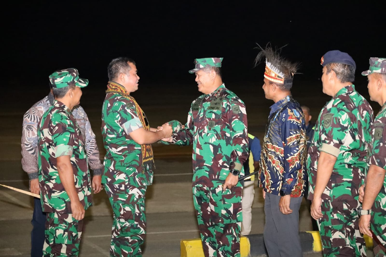 Acara penyambutan berlangsung di area VIP bandara dengan penuh kehangatan dan kebersamaan. Momen ini mencerminkan sinergi yang erat antara institusi TNI AL, TNI AD, serta pemerintah daerah dalam mendukung tercapainya stabilitas dan kemajuan di wilayah Papua Barat Daya.