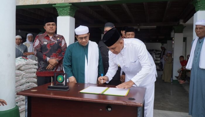 Pj. Bupati Langkat, H.M. Faisal Hasrimy AP, M.AP, melakukan Safari Jumat bersama tokoh agama dan masyarakat di Tuan Guru Babussalam, Kecamatan Padang Tualang (15/11/2024). Dalam rangka menyambut Haul ke-101 Allah Yarham Syekh Abdul Wahab Rokan Al Khalidi Naqsyabandi, Pj Bupati Langkat menyerahkan sejumlah bantuan untuk mendukung acara yang akan digelar pada akhir November mendatang.